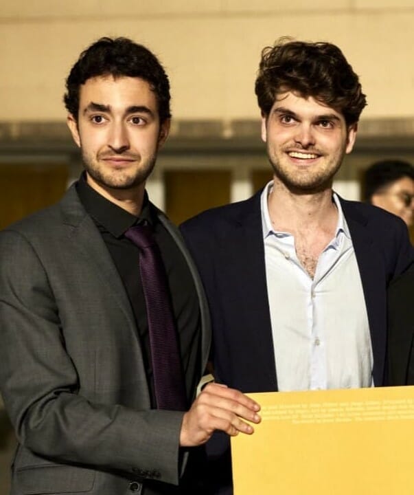 Diego Gómez and Joan Oliver met in 2019 when they were starting their degree in Audiovisual Communication at the University of Navarra. They immediately began to share their knowledge and their passion for cinema and storytelling, and they envisioned the possibility of working together on their own project. After four years and with a handful of ideas in mind, the opportunity to produce a short film as their Final Degree Project came along, which would become «Off the Page.»